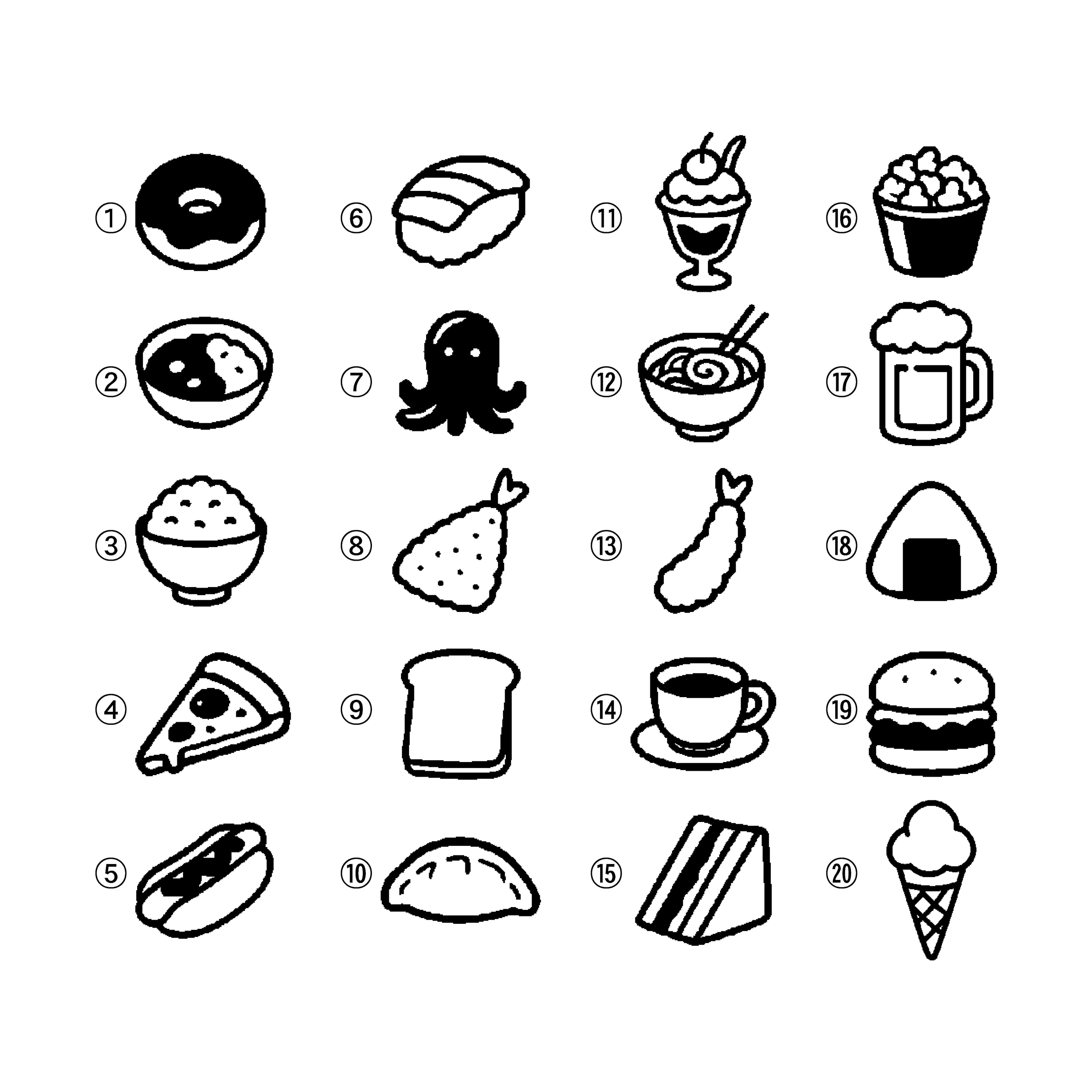 見ているだけでおなかがすきそうな「たべものスタンプ」全20種類。