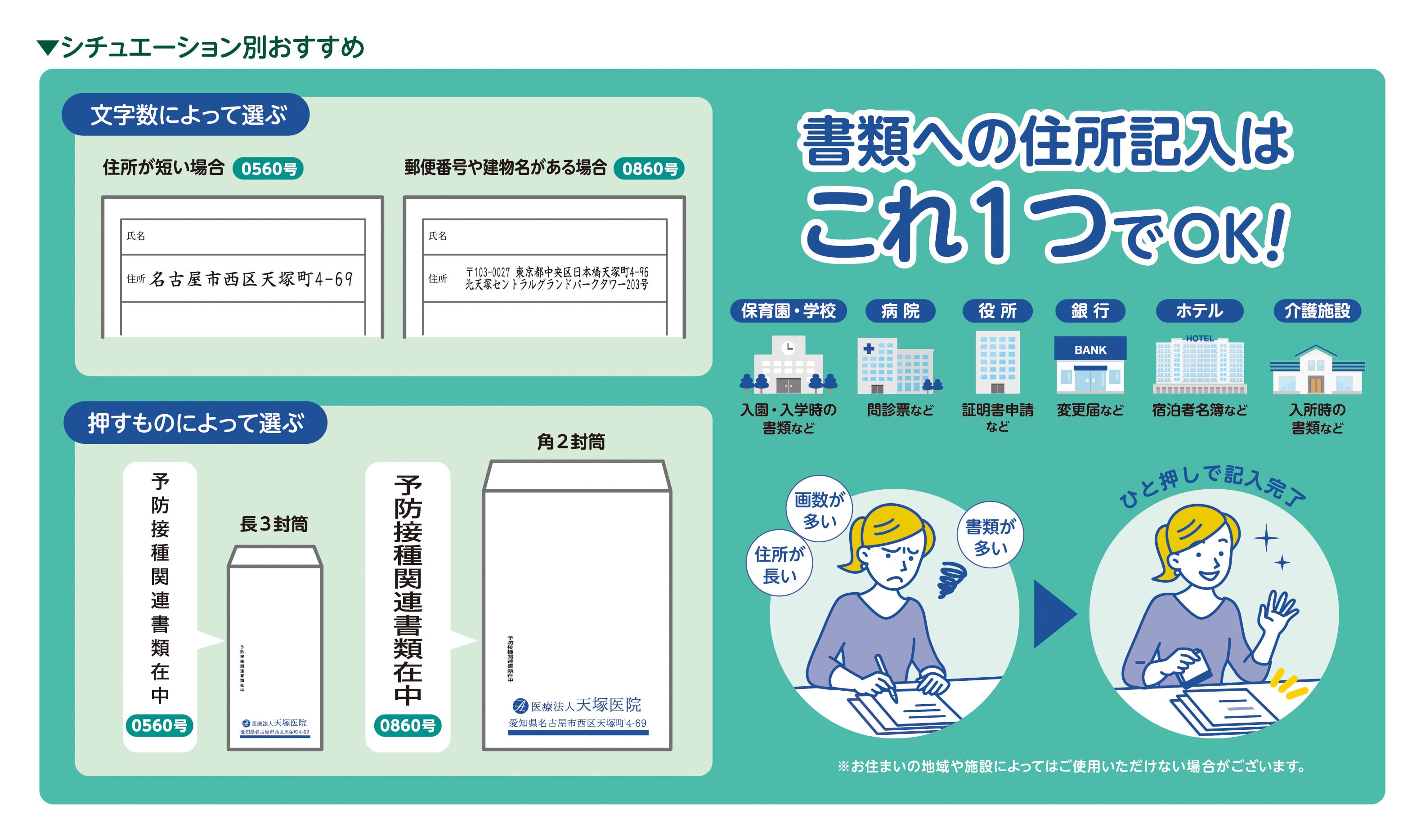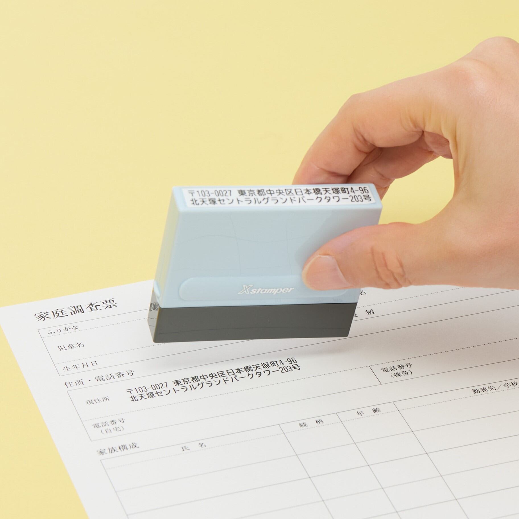 ・会社名、住所、電話番号などの記入作業がスピードアップ! 何度も書類に記入する項目をスタンプにすればポンとおすだけで記入が終わります。
