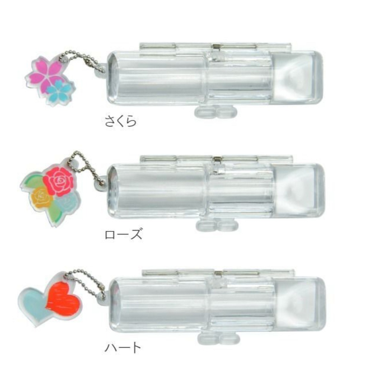 花やハートのチャーム付きで、自分だけの目印にできます。