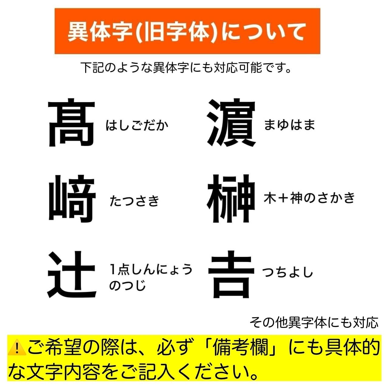 ⚠️異体字をご希望の場合は、ご注文時に備考欄へ、必ずご希望の文字をご記入ください。